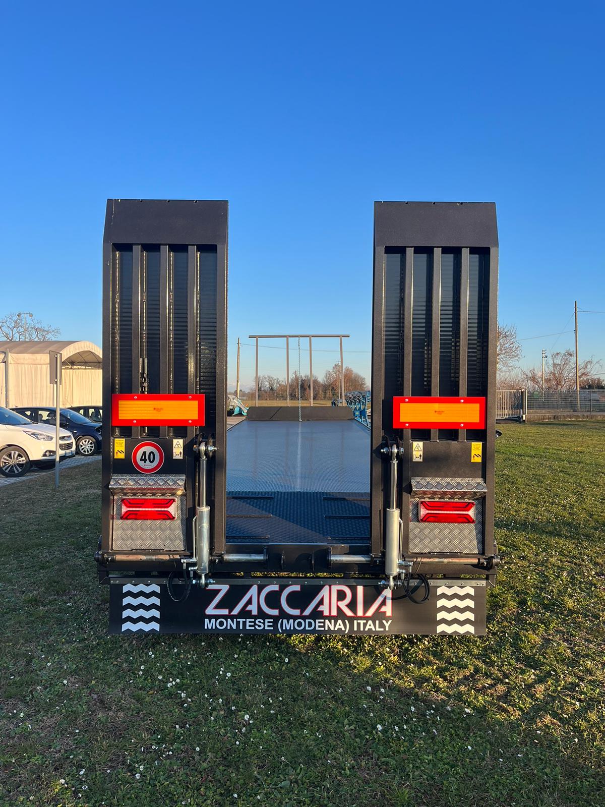 Pianale ZACCARIA 4 ASSI con lunghezza pari a 1020 e larghezza a 255, dispone di rampe idrauliche e sponda anteriore per rotoballe.